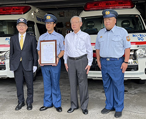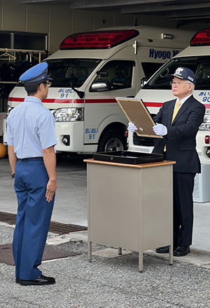 令和7年9月8日(月) 8時15分、相生消防署で救急医療業務功労者1名に対して表彰しました。